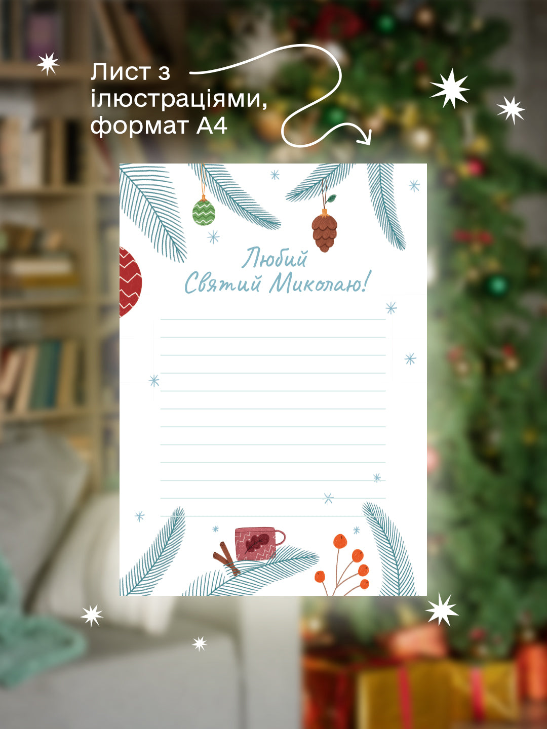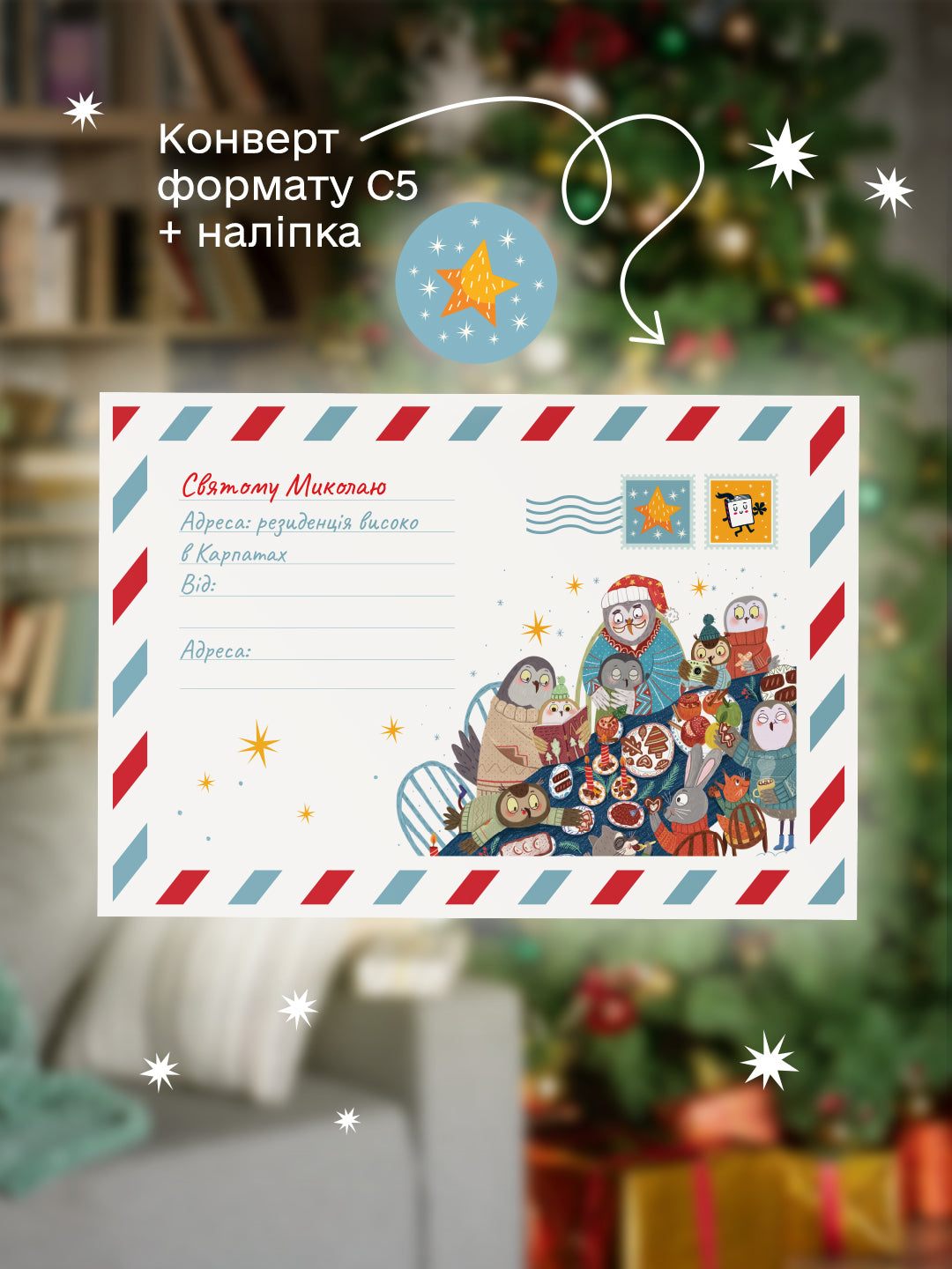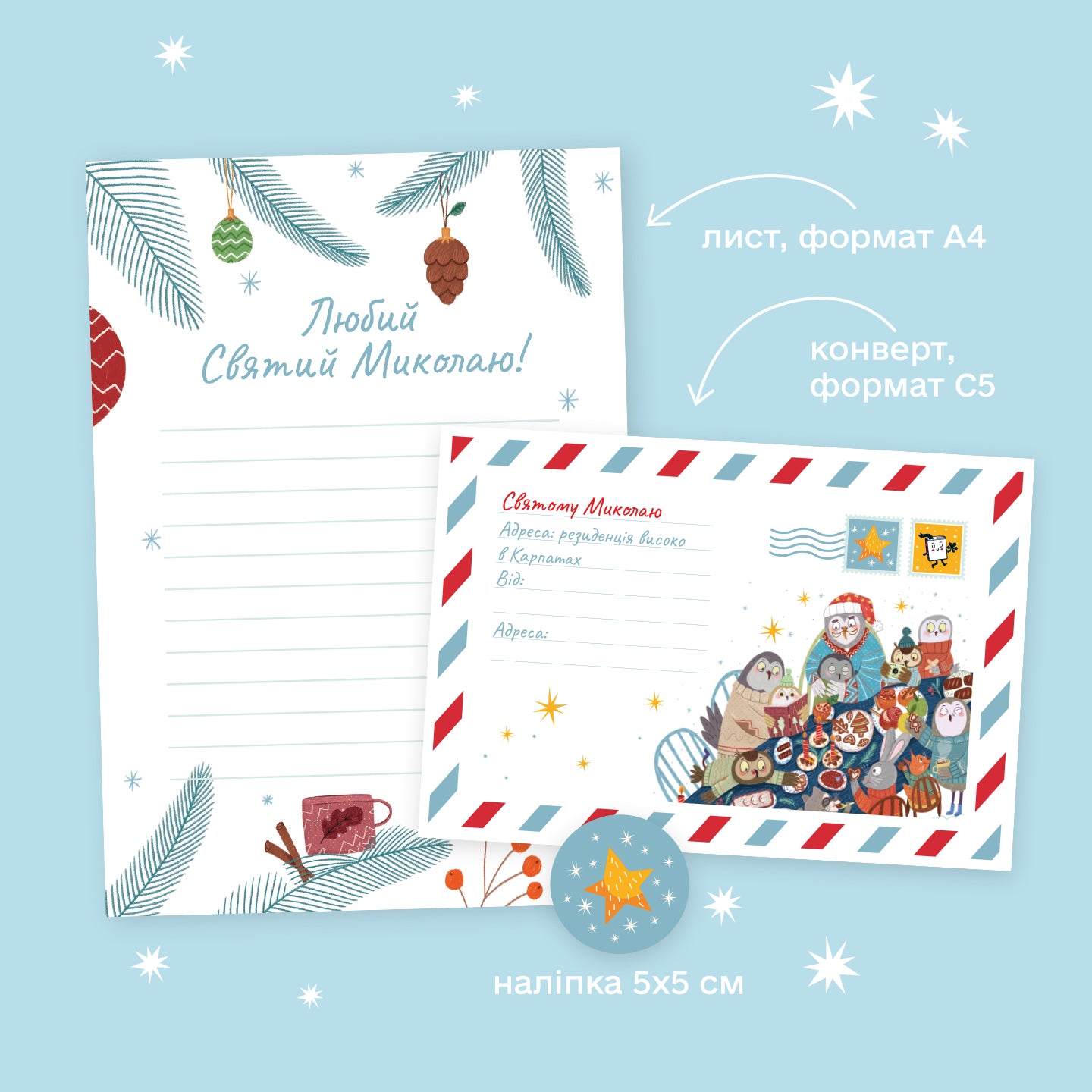 В наборі: Лист до Миколая, Конверт, Наліпка.