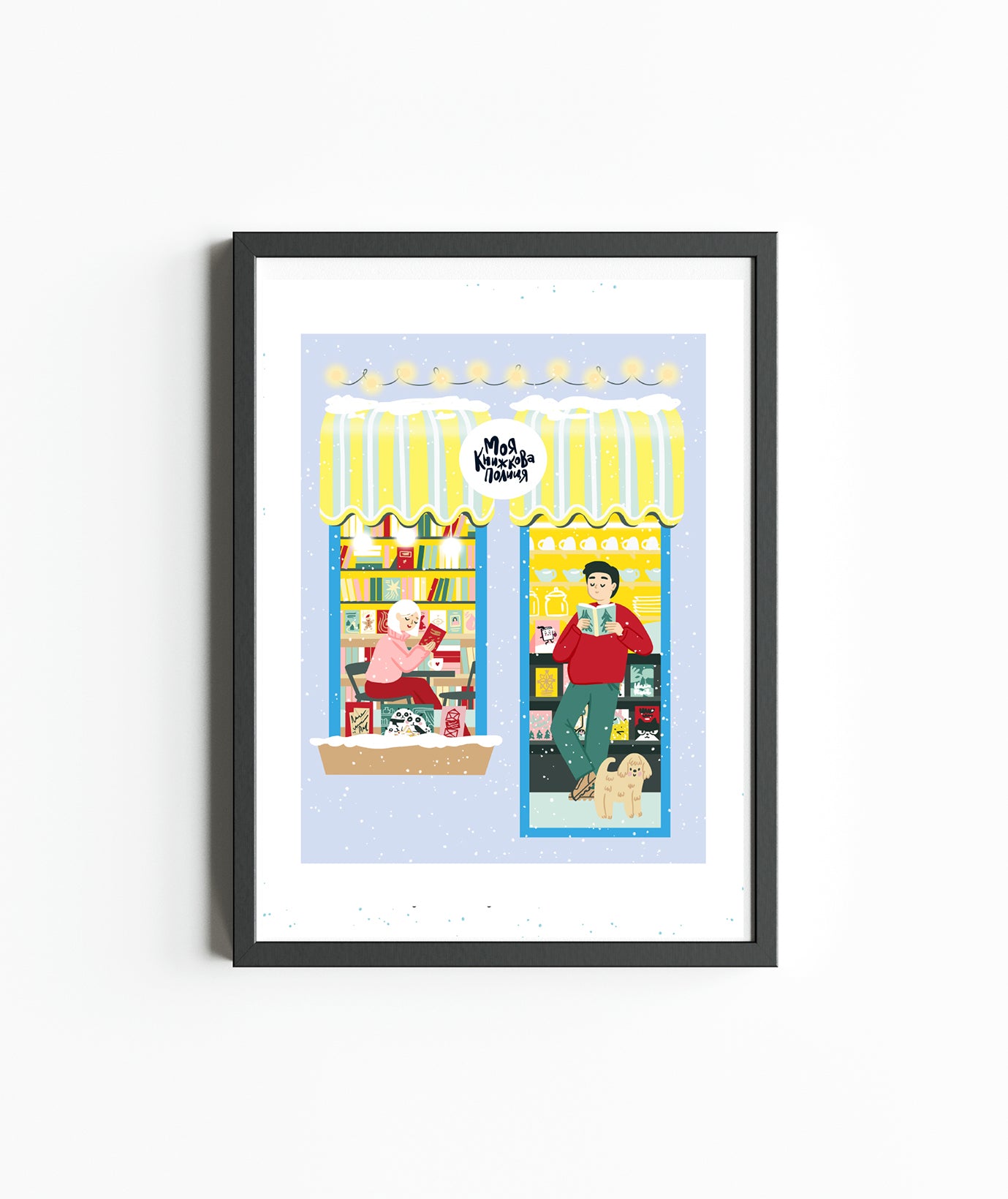 Постер «Зимова книгарня на Чикаленка» (А3) — це маленька зимова казка, яку можна повісити на стіну.