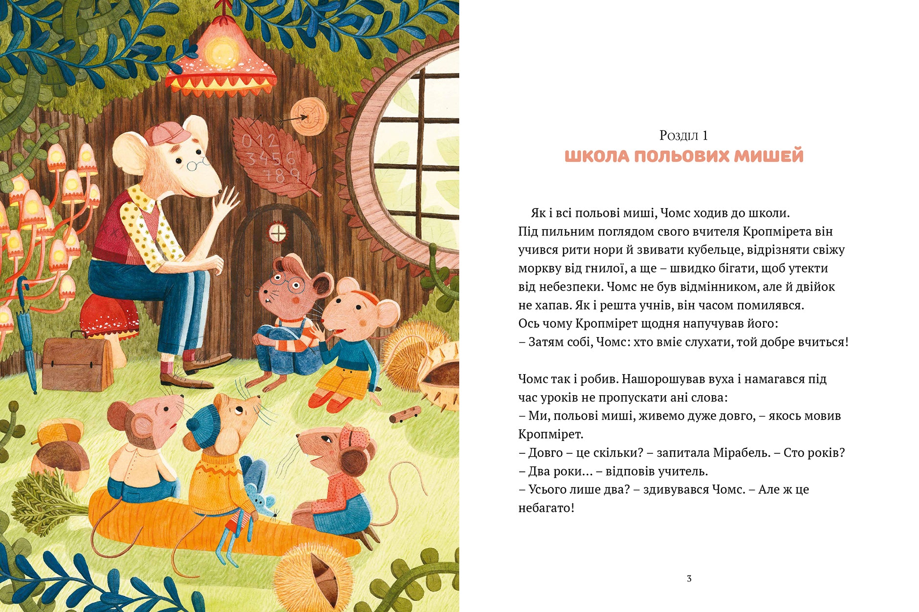 Як і всі польові миші, Чомс ходить до школи. Прикутий поглядом до свого вчителя Кропмірета, він слухає урок про тривалість життя. Чомс усвідомлює, що кожна мить є важливою, і вирішує піти у мандри, щоб прожити свій перший день свободи. Кому вірити? Що вибрати? Наївний Чомс зустріне різних персонажів, переживе пригоди, що спонукатимуть його до роздумів. Цей незабутній день свободи зробить його новим мишеням, коли настане час повертатися до шкільних занять!